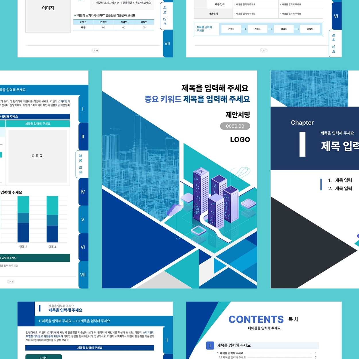 민트 도시 일러스트 제안서 A4 PPT 템플릿(B168)