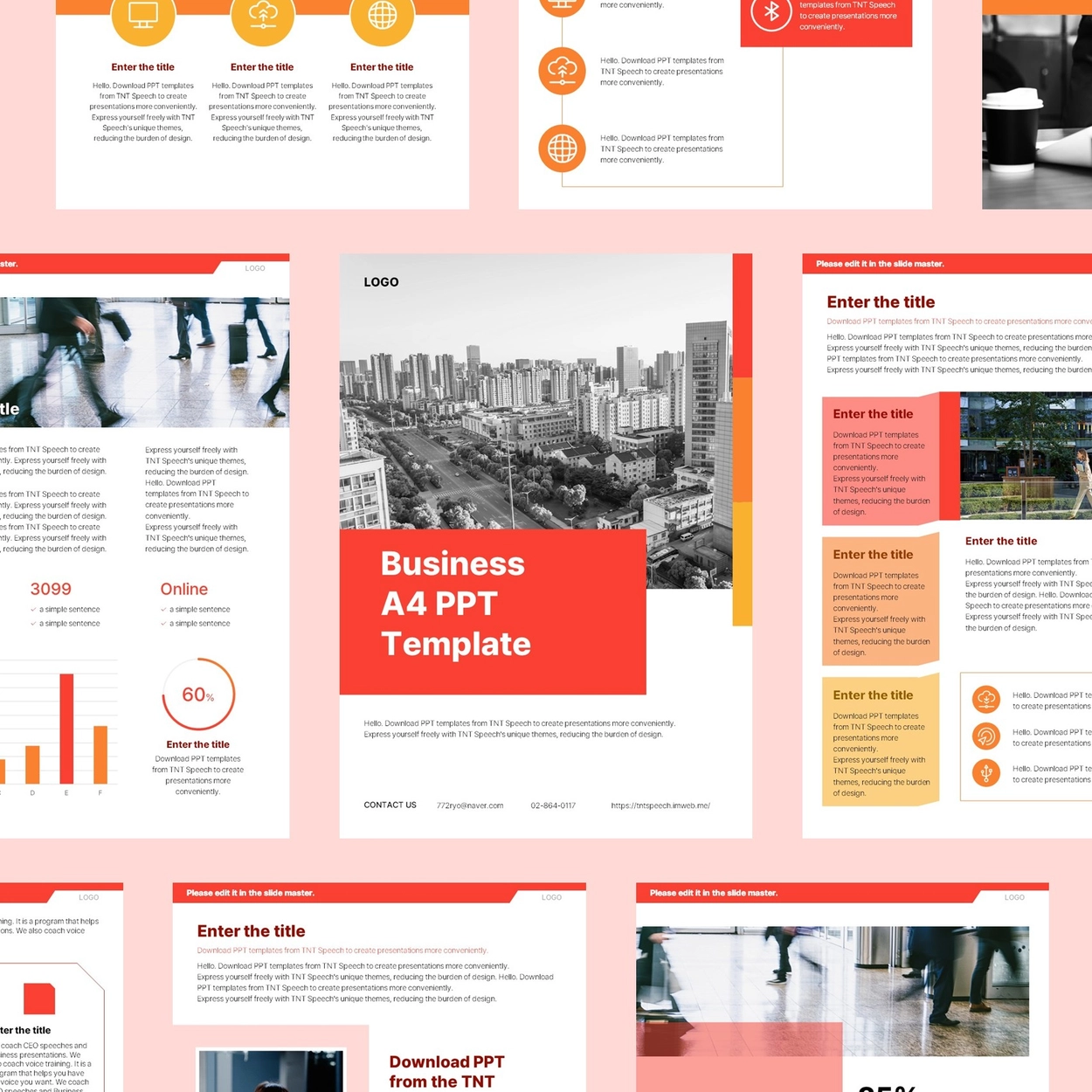 레드 비즈니스 회사 제안서 A4 PPT 템플릿(B176)