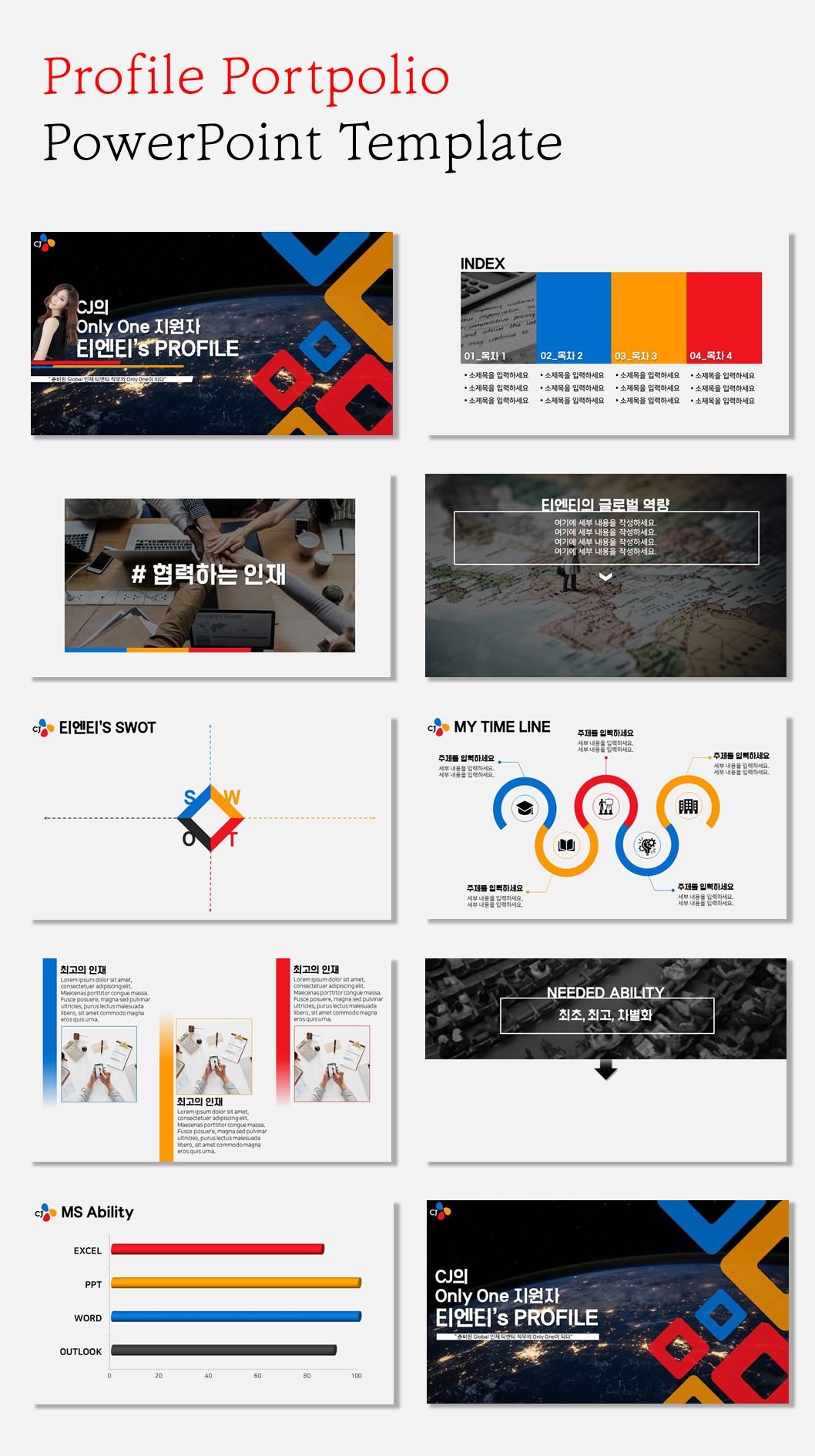 CJ 포트폴리오 PPT 템플릿 (B00054)